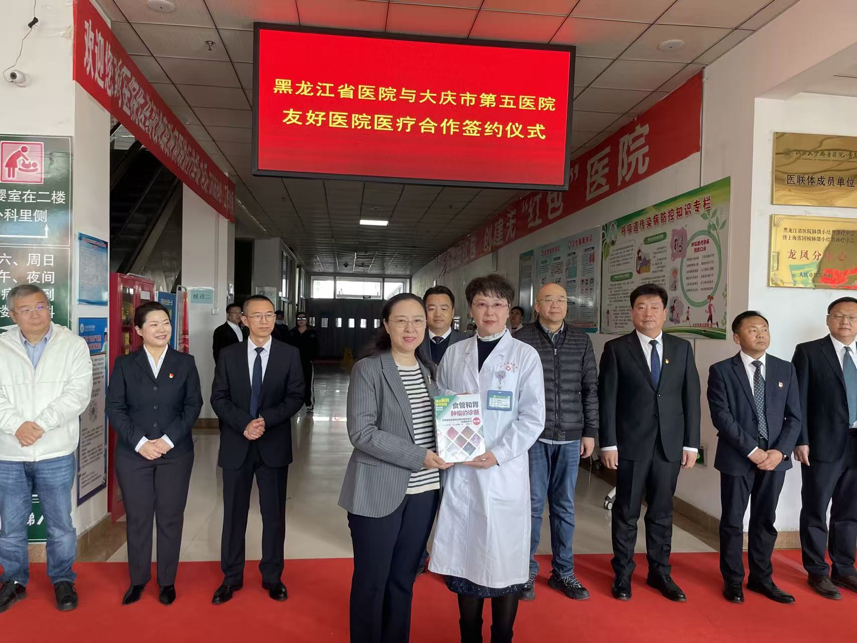 大庆市第五医院书记朱宝山在致辞中表示,与黑龙江省医院建立友好医疗合作,是积极回应油城百姓“在家门口看好病”的重要举措。双方将在消化内镜、心脏病、肺结节诊治、泌尿微创和皮肤美容等重点专科开展深度协作,通过技术学习与本土落地,快速提升我院医疗水平,让优质医疗服务惠及更多群众,真正实现“技术留下来、学科强起来、患者少跑路”的目标。