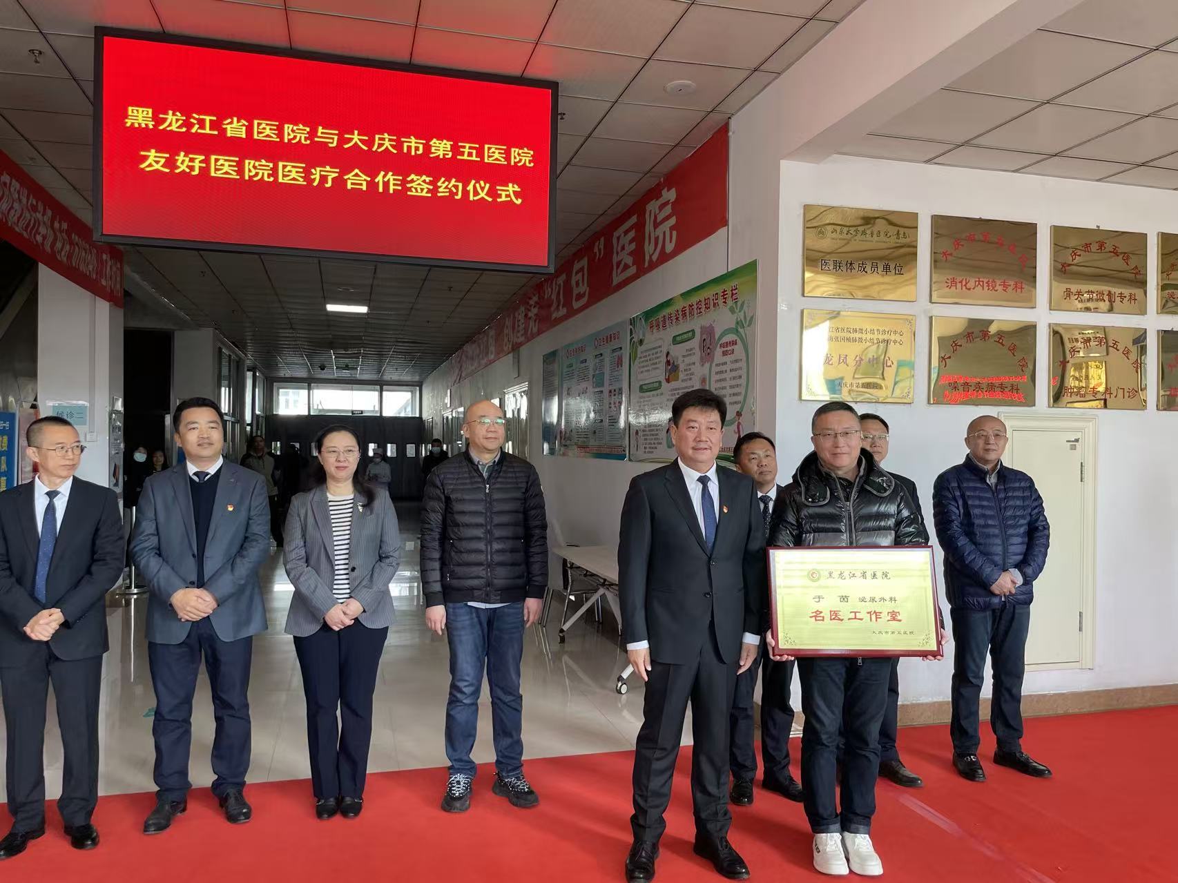 为更好满足群众就医需求,提升区域专科诊疗水平,10月25日,黑龙江省医院专家团队一行莅临大庆市第五医院,正式签署友好医院医疗合作协议,并举行名医工作室授牌仪式及大型惠民义诊活动。
