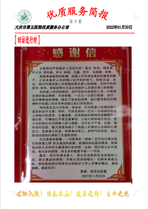 大庆市第五医院优质服务简报第十期