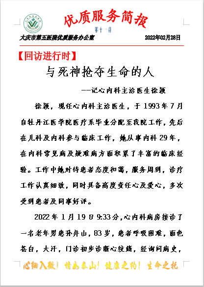 大庆市第五医院优质服务简报第十期