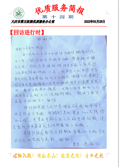 大庆市第五医院优质服务简报第十四期