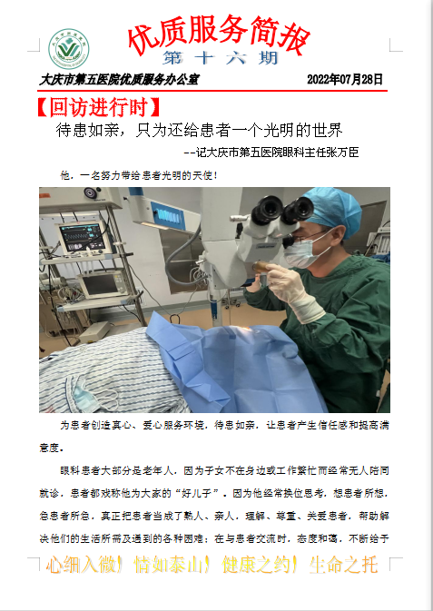 大庆市第五医院优质服务简报第十六期