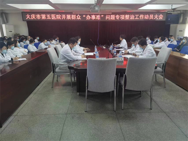 会上,医院纪检监察室负责人刘智慧宣读了《大庆市第五医院关于开展群众“办事难”问题专项整治工作方案》,对专项整治工作目标任务和细化分工进行讲解,提出具体工作要求,在全院内迅速启动落实。通过专项整治工作,压实医院主体责任和监管职责,促进规范行权履职、完善体制机制、补齐短板弱项,使群众就医的获得感、幸福感、安全感不断增强,推动营造医院风清气正的政治生态。